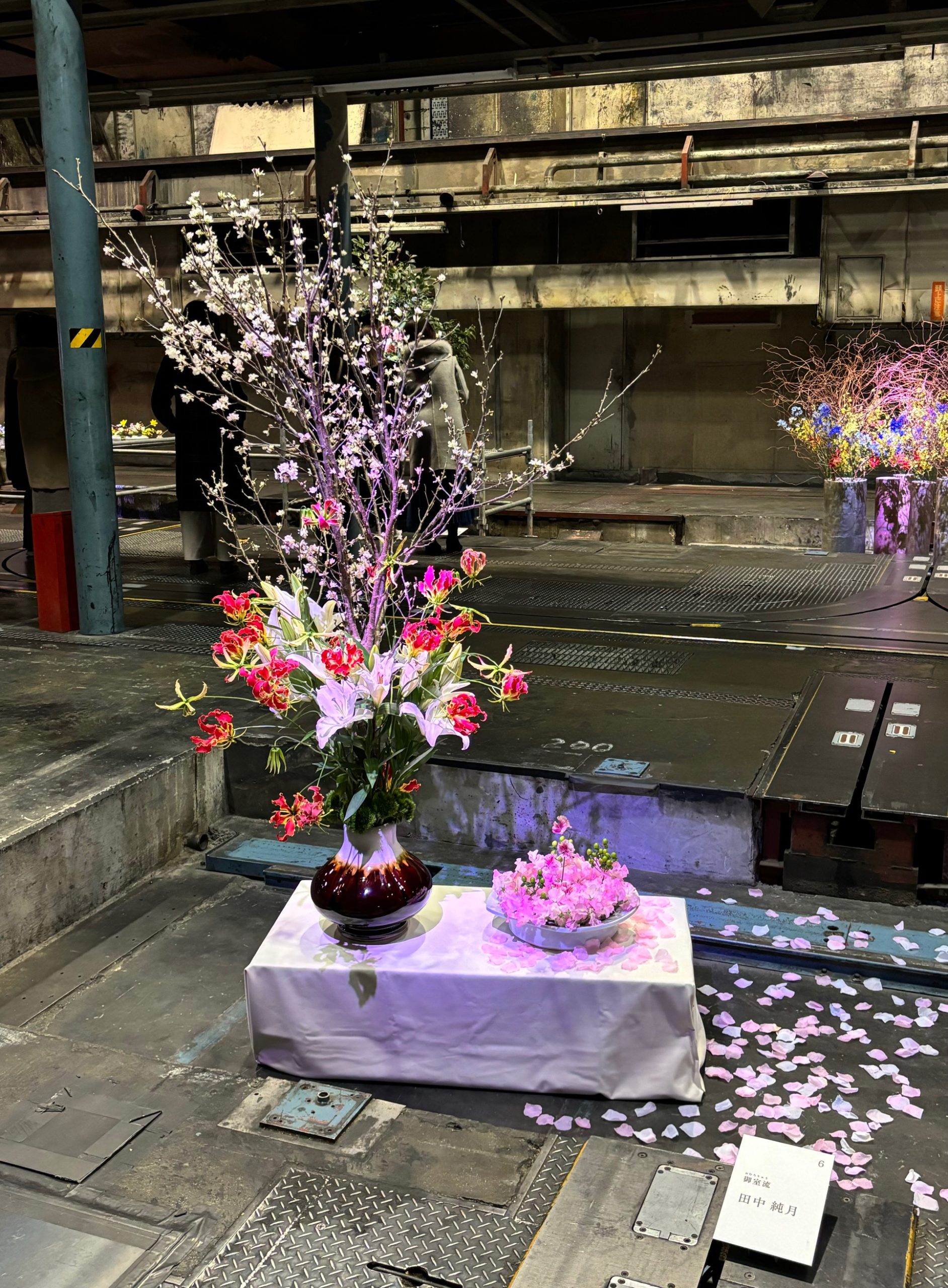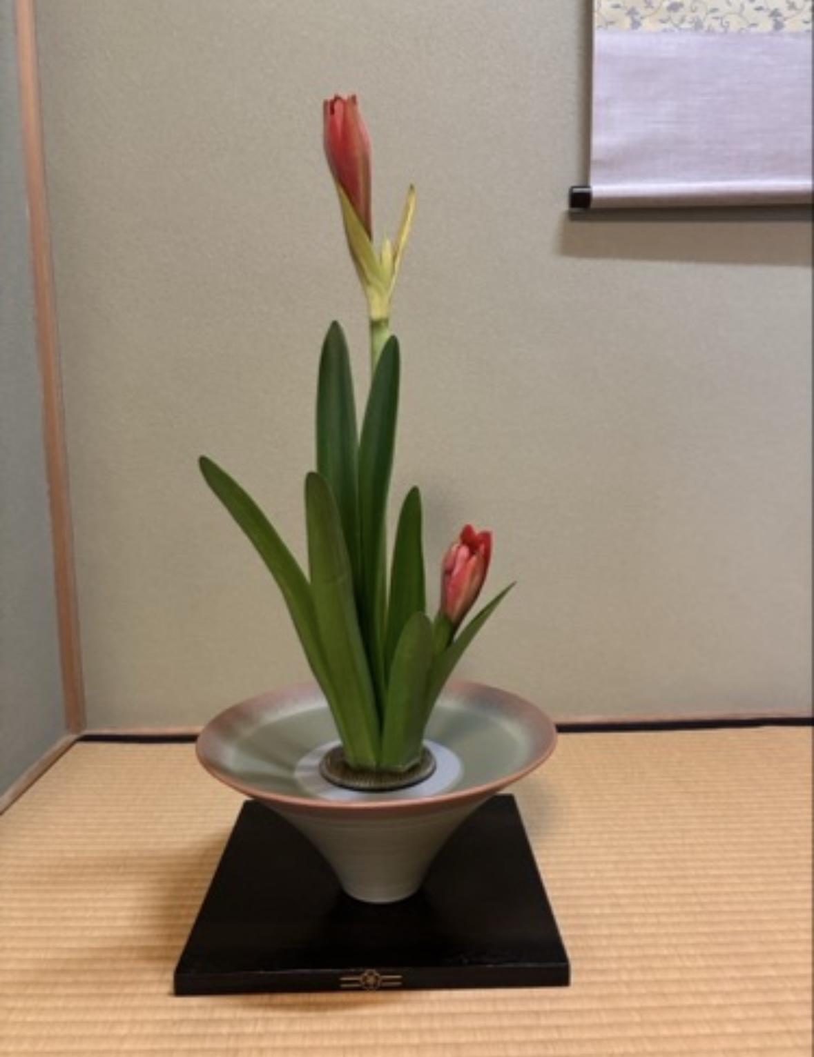 【2月】桜、グロリオーサ、百合、スイトピー / 新世代いけばな展 (田中純月)